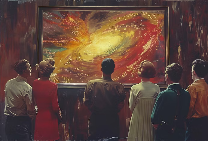 As time passed and my mastery of the brushstroke improved, I discovered my true calling in creating commissioned artwork. And boy, did people love it! The first set of orders was simple: still life, everyday objects, simple portraits, and majestic landscapes. As I made a name for myself, the requests became increasingly elaborate and absurd, putting my skills to the test. One of the most memorable pieces involved painting a colossal, ornate cathedral that housed the Sun along with the inner planets in orbit. I once piled a stack of Corgis miles high into the upper stratosphere. For one particular client, I crafted a depiction of the dense dwellings of Hong Kong within a slice of a red velvet cheesecake.